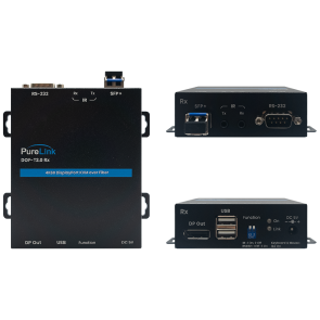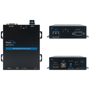 The DOF T2.0 Tx/Rx offers a powerful solution for long-distance distribution of DisplayPort 4K/60 video, audio, and control signals over fiber. Ultra HD/4K, HDMI 2.0 (18G), embedded audio, RS-232, and bi-directional IR are all supported over distances up to 3,300 ft. using PureLink’s TOTALWIRE LC-terminated fiber optic cables. The pure fiber connection provides protection from electromagnetic interference (EMI), delivering lossless transport for optimal signal quality.