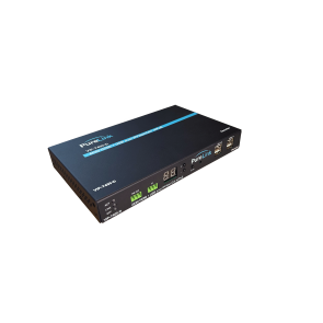 The VIP-T400 4K HDMI & USB/KM CAT and Fiber AV over IP Decoder provides UltraHD/4K60 4:4:4 HDR video, audio, RS-232, IR, and USB 1.1, 2.0, and USB camera signal transport over IP networks. The VIP-T400 can be used as a point-to-point extension system supporting distances up to 120 meters over CAT6a, and up to 2 kilometers over SFP Single Mode Fiber, and is also compatible with MultiMode SFP for shorter distances. The VIP-T400 is designed to handle multiple signals types for applications that require reliable distribution, switching, matrixing, and layered matrix switching. The VIP-T400 supports audio insertion and extraction. Multiple control options are available including the VIP-T400’s own rich API, PureLink’s VPX IP Video Management Software, and QSC plugin. Providing complete and reliable AV over IP extension, the VIP-T400 is the ideal solution for your application. The VIP-T400 is TAA compliant, making it perfect for Government and Military applications and critical viewing 24/7/365 installations.
