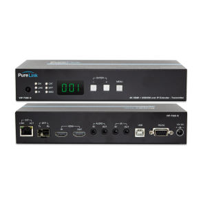 The VIP-400 4K HDMI & USB/KM CAT and Fiber AV over IP Decoder provides UltraHD/4K60 4:4:4 HDR video, audio, RS-232, IR, and USB 1.1, 2.0, and USB camera signal transport over IP networks. The VIP-400 can be used as a point-to-point extension system supporting distances up to 120 meters over CAT6a, and up to 2 kilometers over SFP Single Mode Fiber. The VIP-400 is designed to handle multiple signals types for applications that require reliable distribution, switching, matrixing, and layered matrix switching. Multiple control options are available including the VIP-400’s own rich API, PureLink’s VPX IP Video Management Software, and QSC plugin. Providing complete and reliable AV over IP extension, the VIP-400 is the ideal solution for your application.