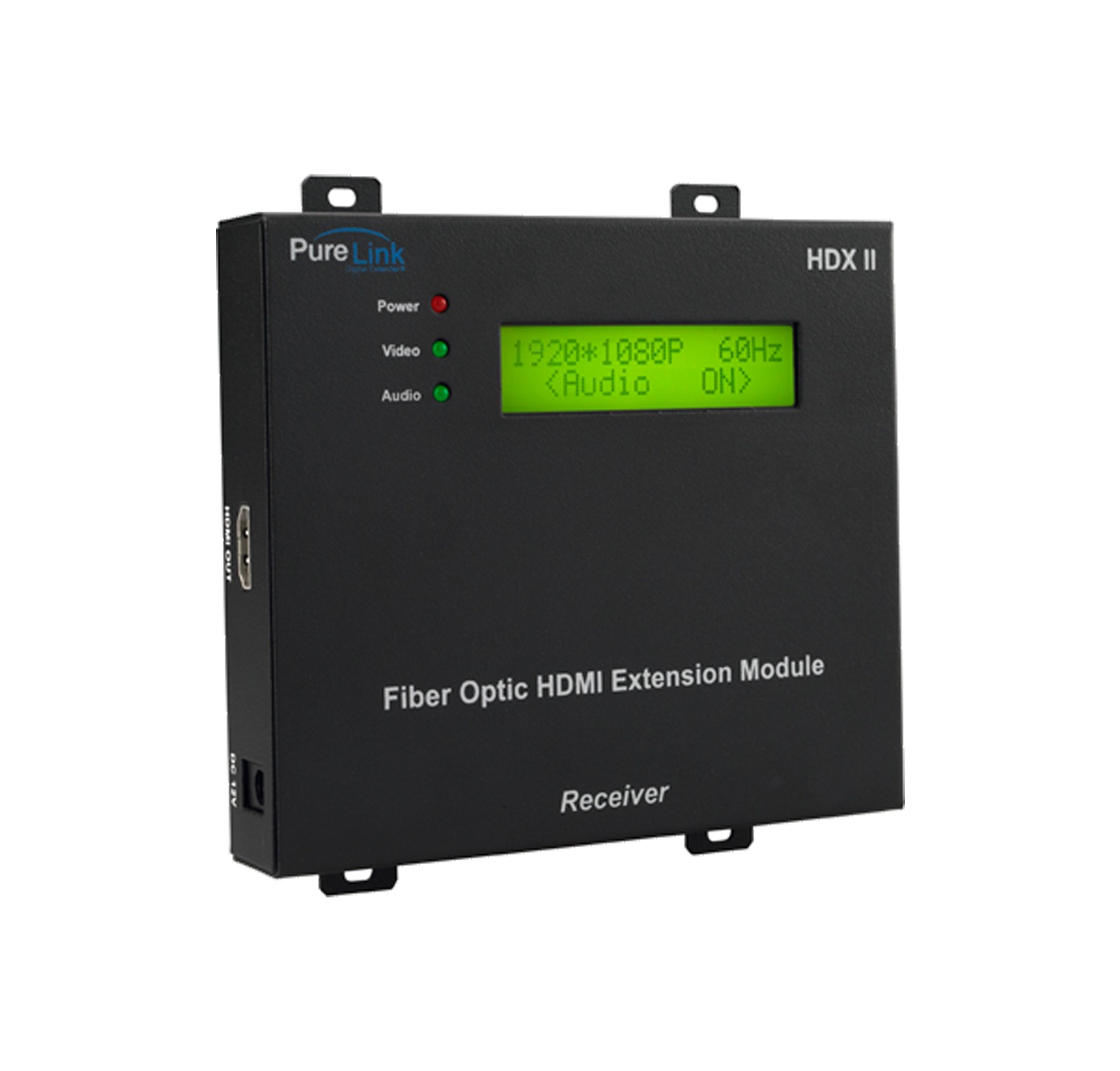 The HDX II Tx/Rx HDMI over Fiber Extension System provides long distance transmission of Full HD/1080p signals to distances up to 5,000 ft. The HDX II features on-screen diagnostics at each end via the built-in LED display, as well as powerful Auto-EDID management allowing reliable signal extension with full HDCP compliance.